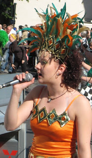 Katsoin tänään puolen tunnin verran sambakoulujen kulkuetta Helsingissä. Olen laittanut kuvat siihen järjestykseen kuin näin kulkueen osanottajat. Poikkeus on tämä kuva, joka olisi ollut toisena. Tämä kelta-asuinen nainen symbolisoi mielestäni auringon, lämpimän sään vaikutusta meihin suomalaisiin. Tulemme vapautuneemmiksi, iloisemmiksi.